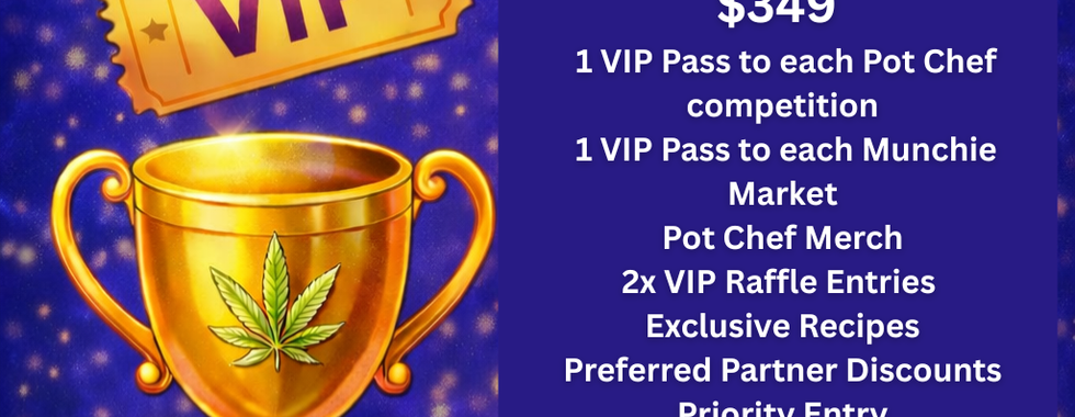 Experience the event in style with our VIP ticket for $70. ($100 Value) VIP attendees enjoy exclusive perks including: Early entry to the event at 1P Complimentary Pre-Roll 3 Infused Samples Complimentary soft drinks & water A special VIP goodie gift bag by our sponsors $90 at the door.
